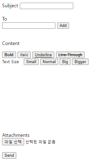 첨부 파일 입력란은 받는 메일 입력란과 비슷한 방식으로 작동되므로 쉽게 구현할 수 있다. ..writePage.onFileInput(event) 메서드를 구현한다.